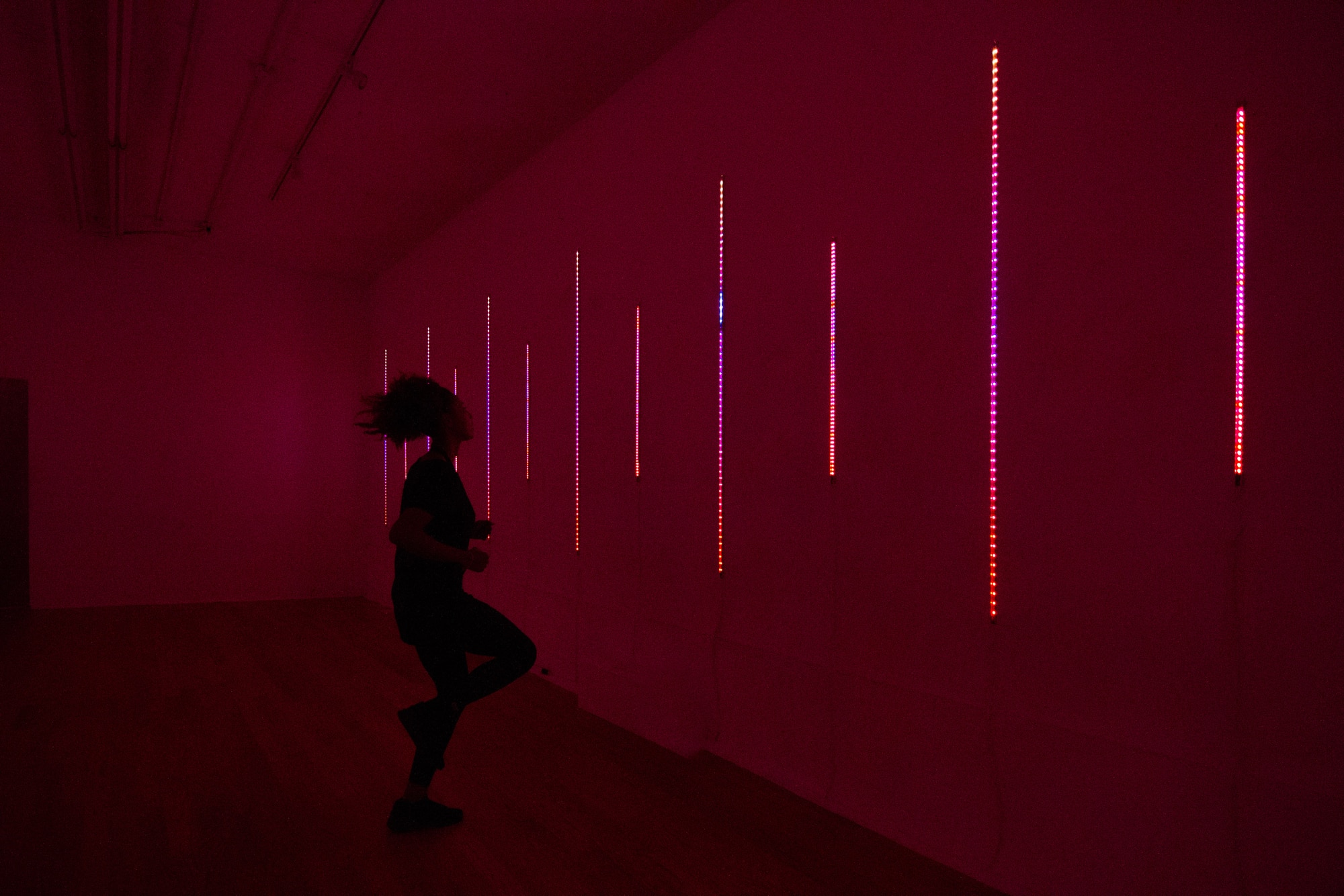 Presented in collaboration with Berlin-based IMRSV Arts, "Emerge" transformed the Philly Art Collective Gallery into a dynamic, immersive environment that responded to the human body in real time. Two 40-foot displays composed of LED pixels and aluminum translated each viewer's heartbeat into evolving light compositions in response to live music. "Emerge" created an intimate connection between performer and audience, amplifying each moment through responsive, real-time visuals.